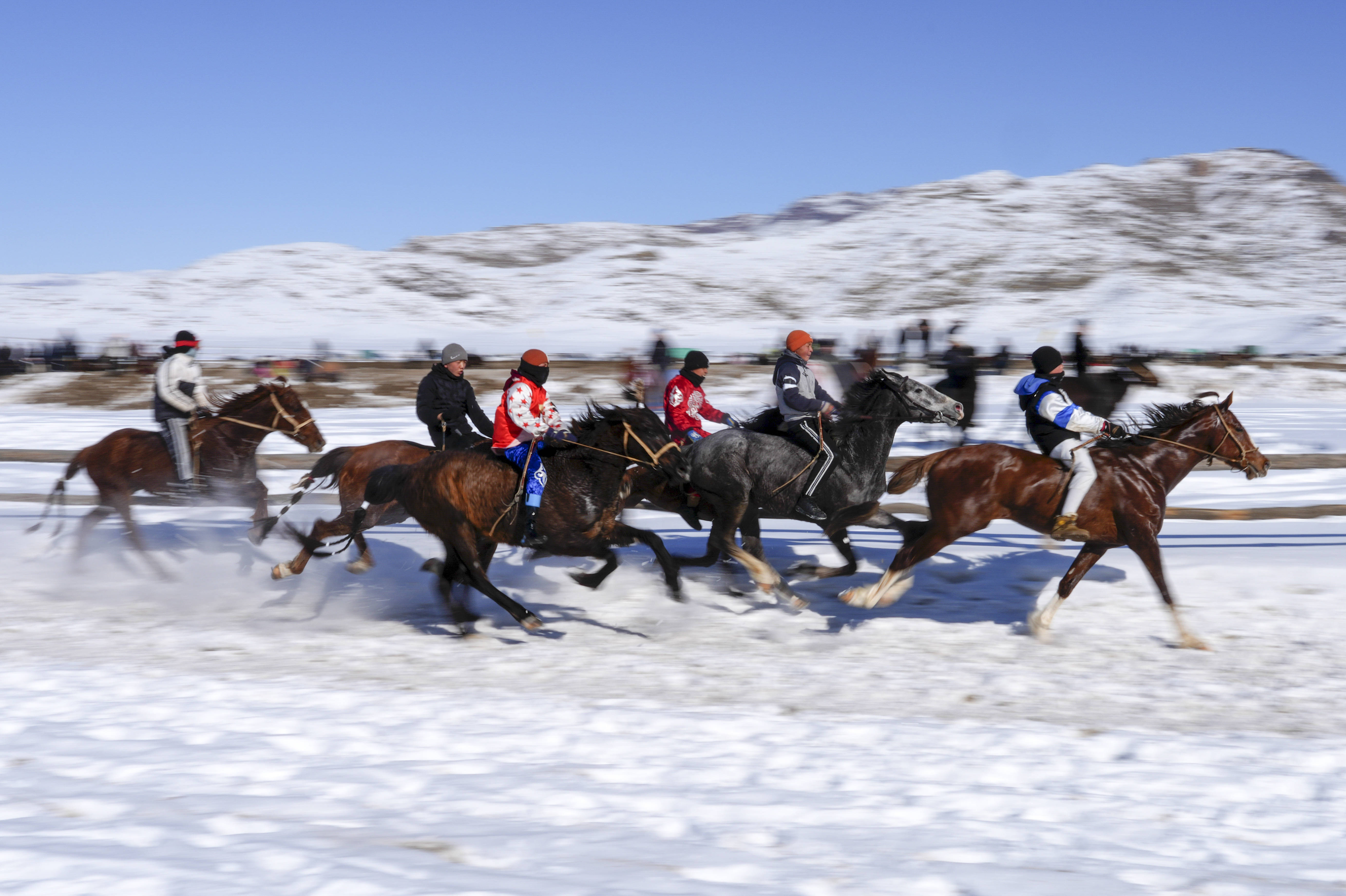 2026年2月17日,在新疆青河县狼山景区赛马场,当地群众开展赛马活动欢度新春佳节。新华社发(叶尔江·木哈买提 摄)记者:胡虎虎、王菲