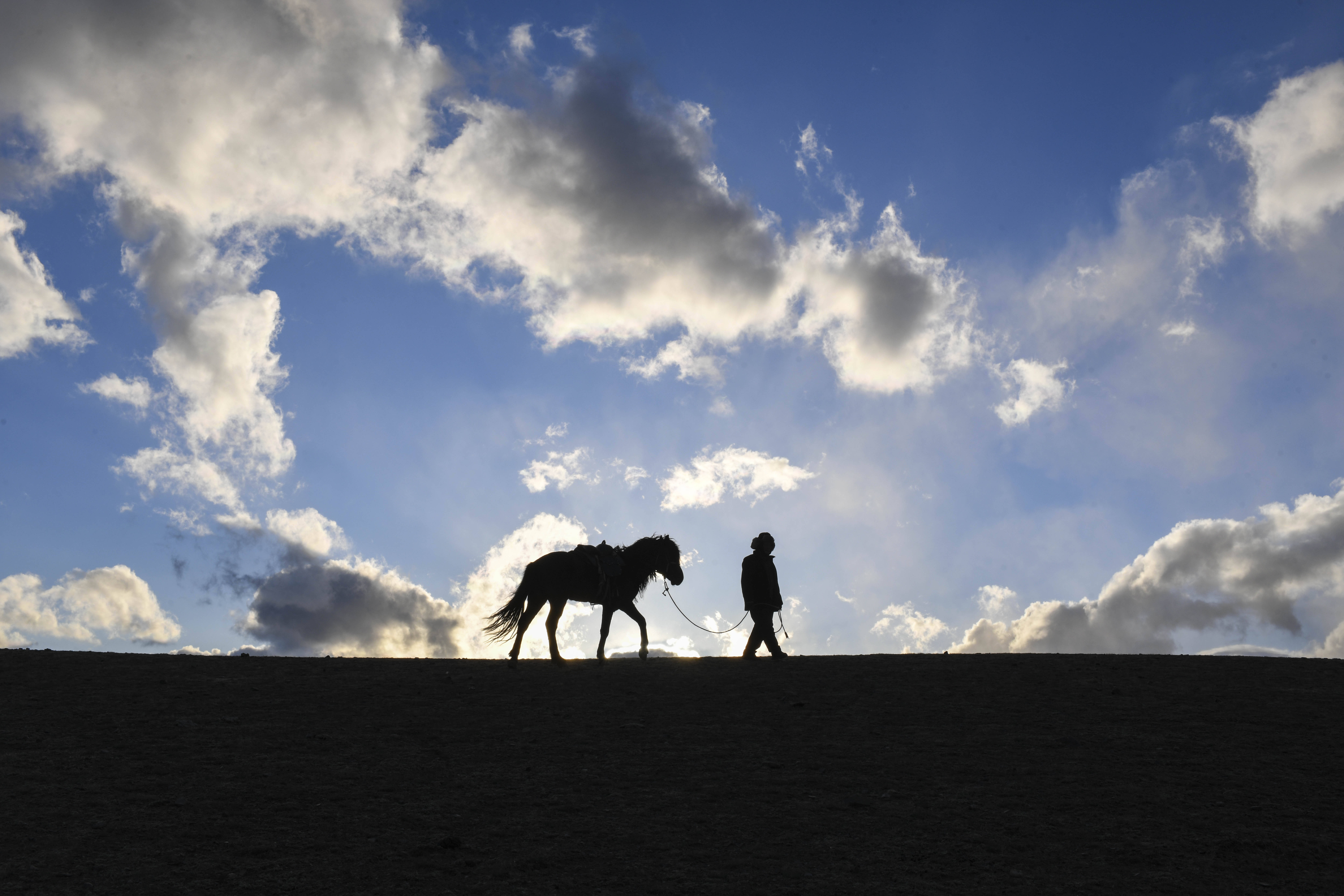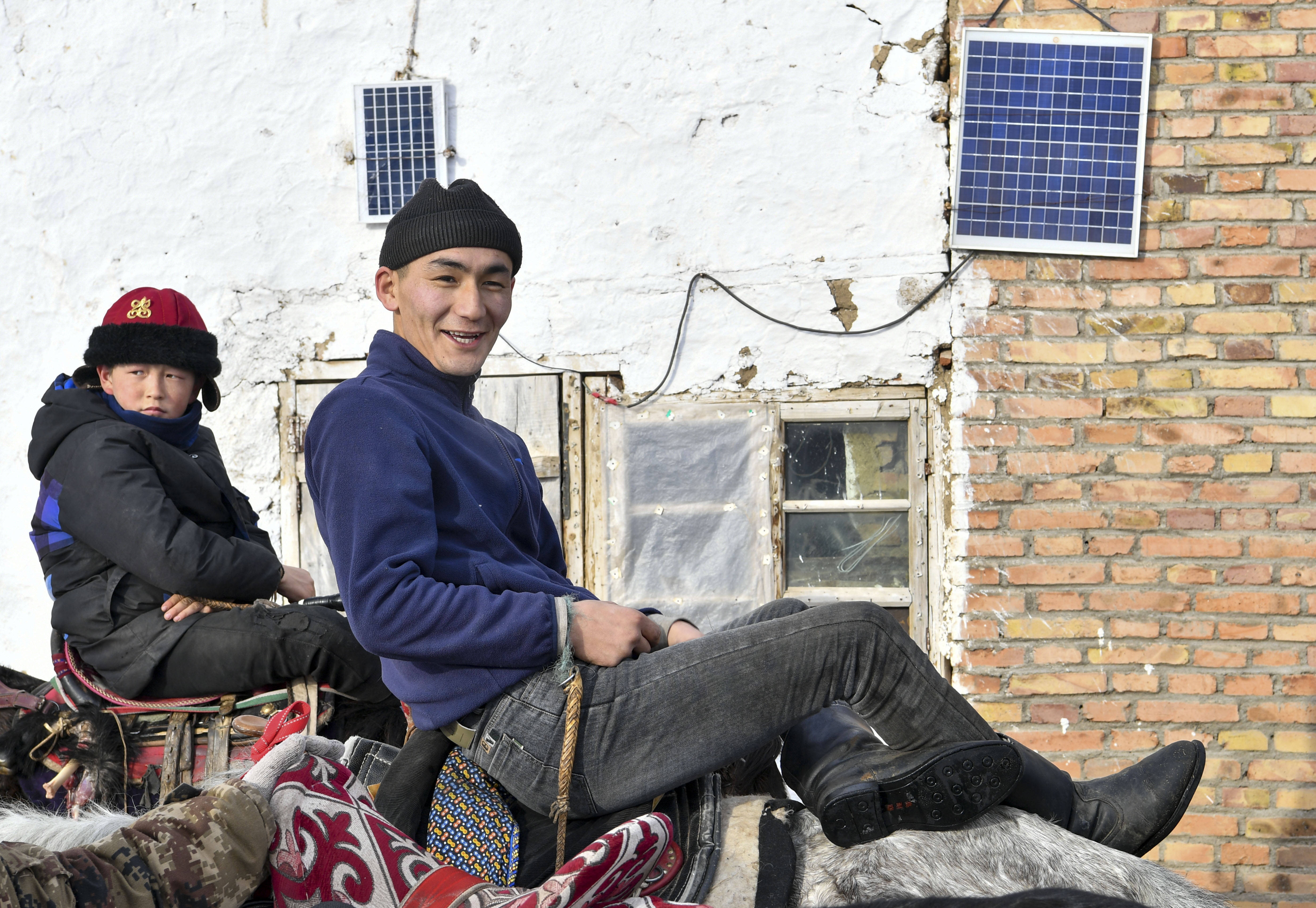 新疆巴尔鲁克山区的牧民坐在马背上享受午后阳光(2023年2月9日摄)。新华社记者 胡虎虎 摄从文物到草原