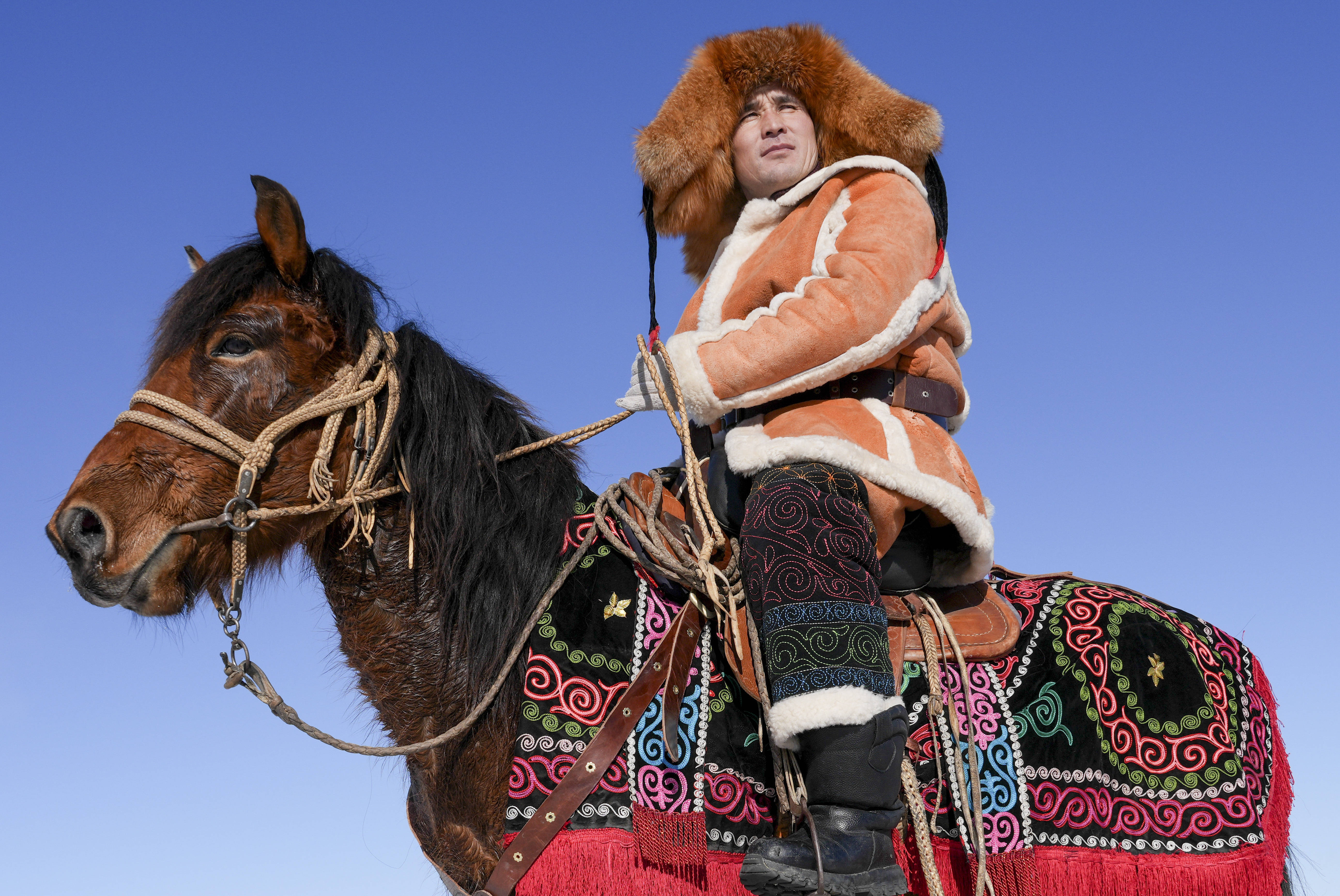 2026年2月17日,在新疆青河县狼山景区赛马场,当地群众身着盛装开展传统马上运动欢度新春佳节。新华社发(叶尔江·木哈买提 摄)每逢节庆喜事