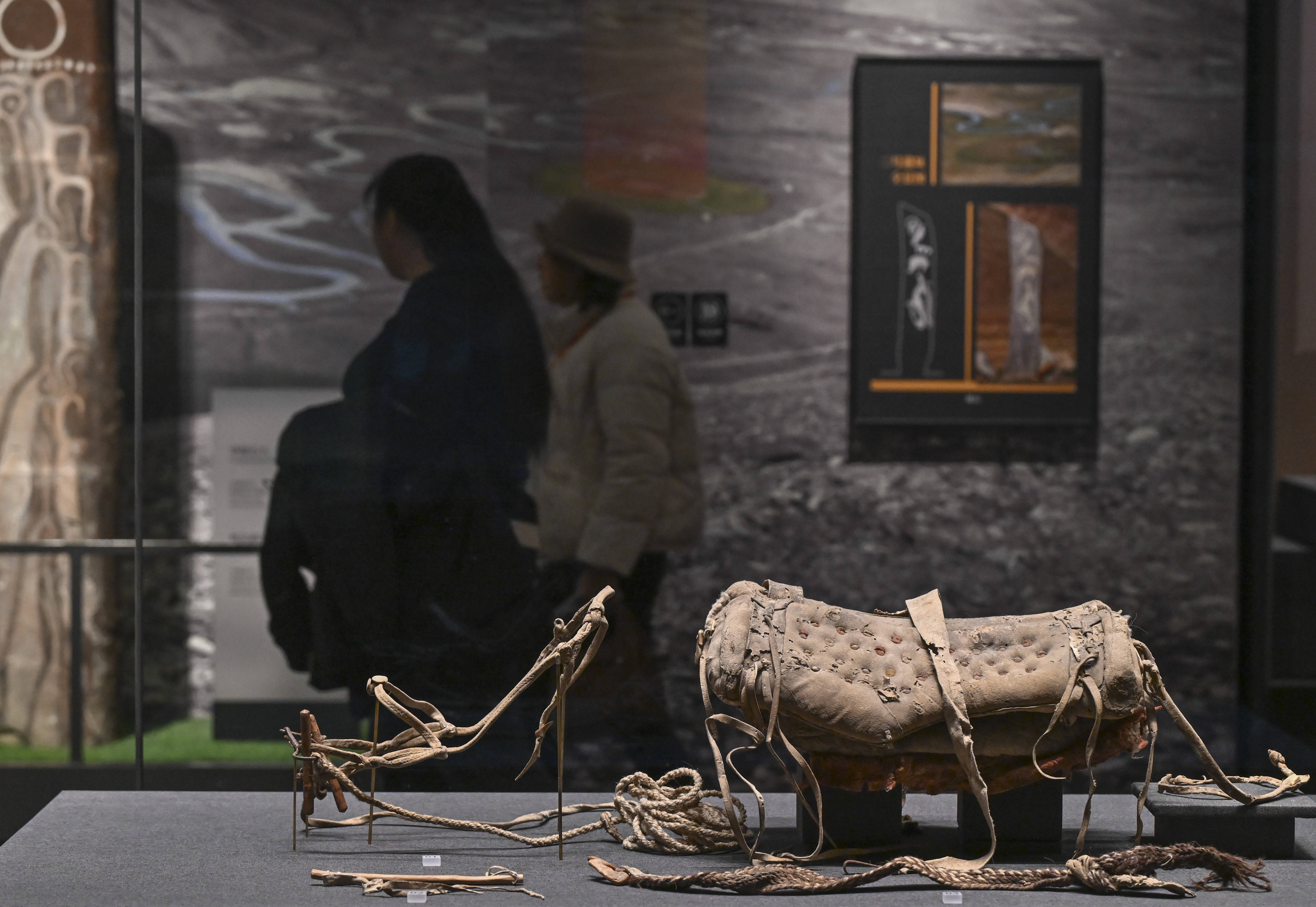 这是在新疆维吾尔自治区博物馆拍摄的马鞍、马鞭、辔头等文物(2026年2月11日摄)。新华社记者 王菲 摄