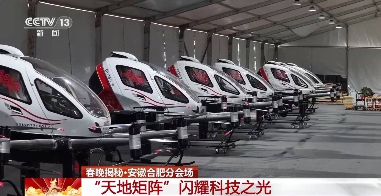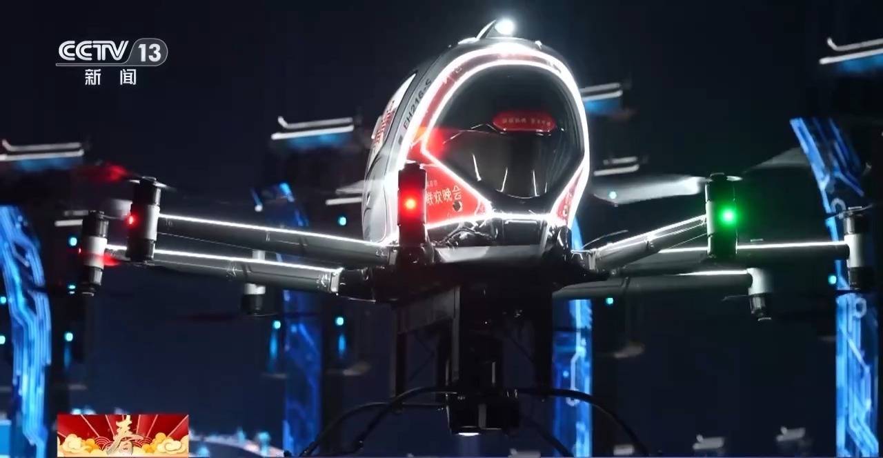 在主舞台骆岗公园上空,低空飞行器列阵翻飞打造的“天地矩阵”是在春晚的舞台上首次使用到“飞灯”技术,完成它的就是无人驾驶载人eVTOL。导演组和科技团队花了两个多月的时间对它进行改造,并且配合了智能算法等技术的运用,这才有了春晚舞台上的惊艳亮相。