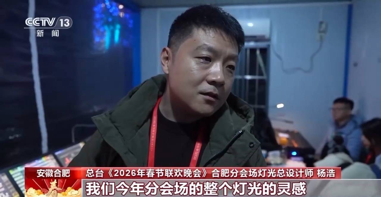 总台《2026年春节联欢晚会》合肥分会场灯光总设计师 杨浩:今年分会场的整个灯光的灵感,是来源于《周易》,就是洞穿历史、预见未来的意思。