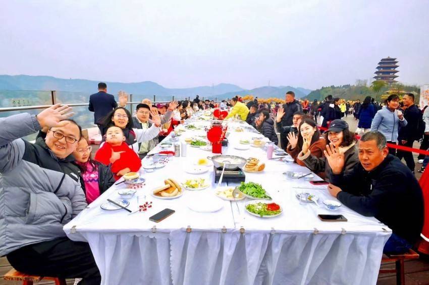 暖意融融的长龙宴传递着新春的温情与团圆的希冀,游客们围坐共饮,在美景与美食的交融中感受着成都东部新区传统年俗的独特魅力。(袁唯茜)